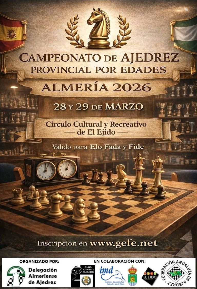 Club de Ajedrez El Ejido participa activamente en todos los torneos provinciales y competiciones oficiales de ajedrez tanto de la Federación Andaluza como de la Federación Española.