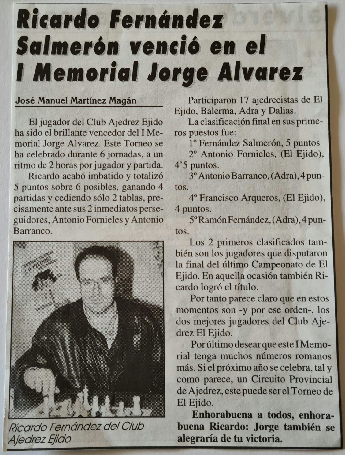 A continuación mostramos muchos artículos y reportajes de prensa de las primeras épocas del club destacando la gran actividad y éxitos conseguidos gracias al apoyo constante de las instituciones de El Ejido y sobre todo al esfuerzo y constancia del equipo directivo del club poniendo al ajedrez en lo más alto de los deportes en la ciudad de El Ejido.